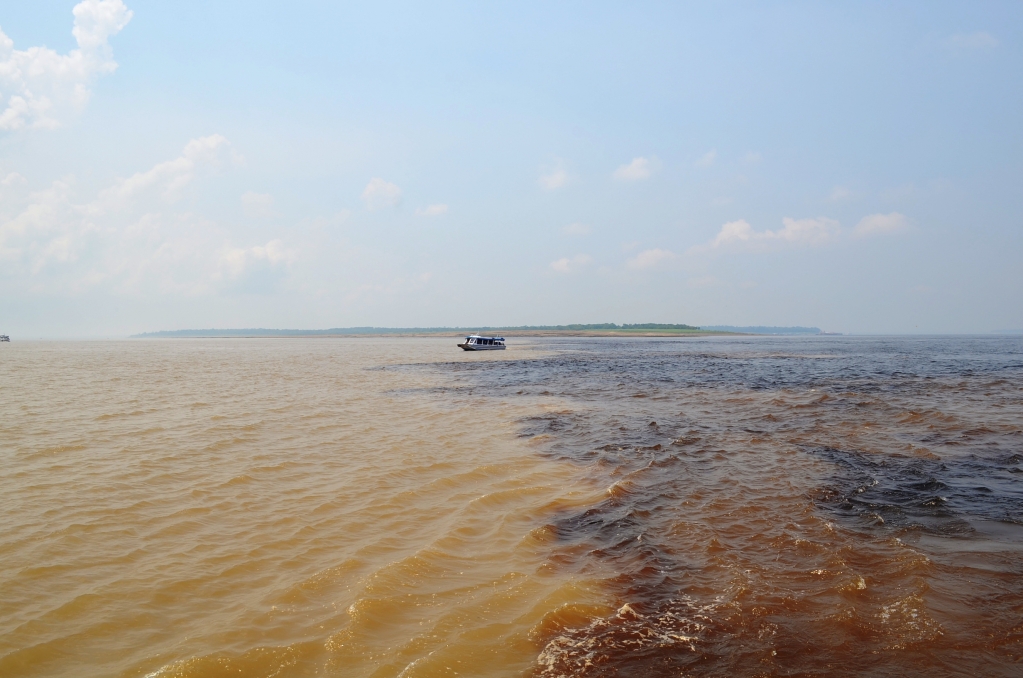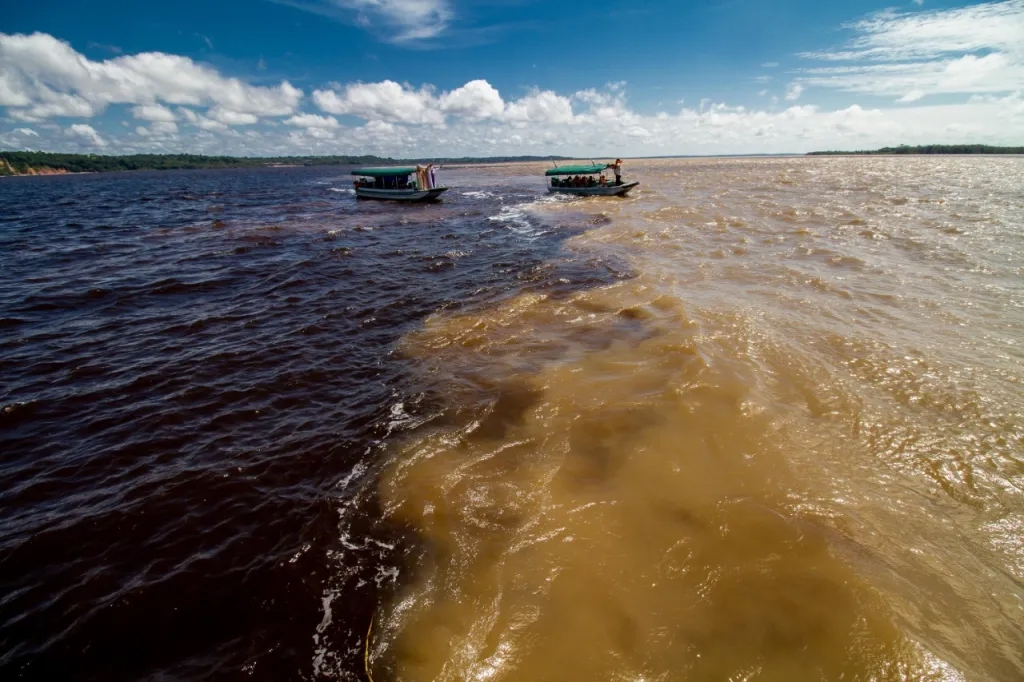 O Rio Negro, vem de uma região mais rochosa e carrega ao longo dos seus 1700 km uma grande quantidade de sedimentos da floresta. Já o Rio Solimões, ocorre numa área de maior erosão, deixando suas águas com cor barrenta.