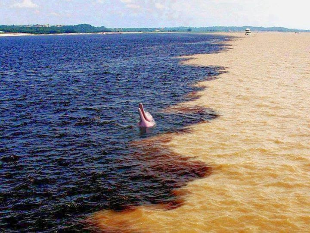 Quando ocorre o encontro de ambos na região de Manaus, após quase 6 km a cor barrenta do Rio Solimões que vence, já que o esse tem maior volume de água que o Negro, criando o Rio Amazonas.