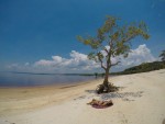 Ao longo da praia tem várias árvores e dá pra aproveitar a sombrinha delas.